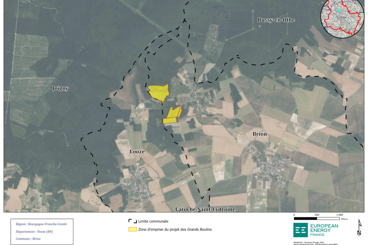 Le projet agrivoltaïque des Grands Boulins se situe sur la commune de Brion, dans le département de l’Yonne. Il permettra la continuité d’une activité de sapinières sur 2 parcelles et la remise en prairie d’un 3ème parcelle pour de l’élevage bovin.